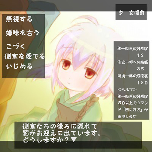 ・紫をかまいすぎると側室の「嫉妬ゲージ」があがり、紫が側室からのいじめを苦に自殺、または側室に暗殺されてしまうので、嫉妬ゲージには充分注意しましょう。